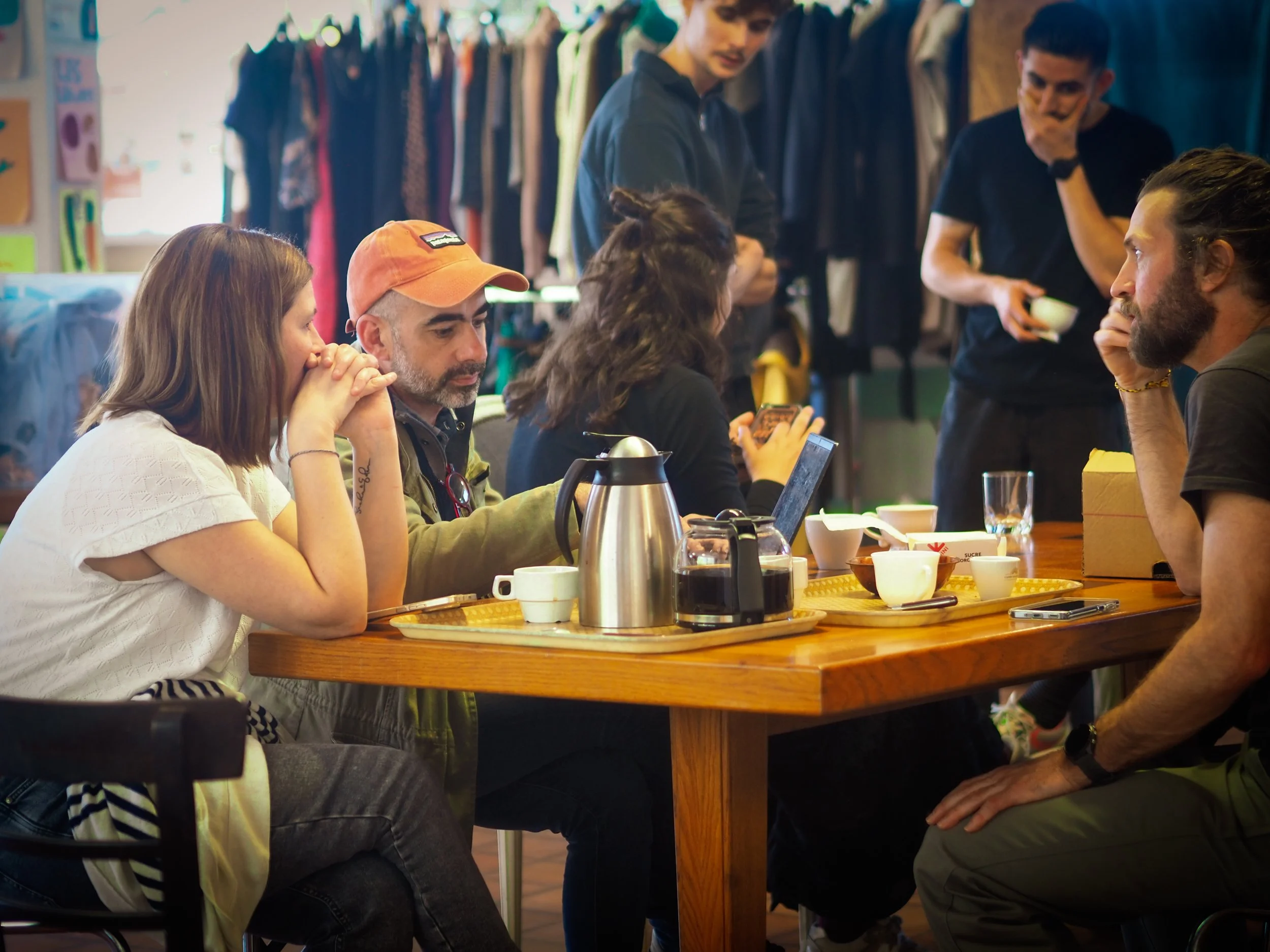 L'après-midi a ensuite permis d'entrer dans une dimension plus concrète, avec la rencontre de pilotes et de salarié.e.s de l'équipe nantaise, autour d'une activité collective forte : l'animation du Ripaillon, café associatif, par les pilotes. À travers les différentes discussions, les nouveaux·elles arrivant·es ont pu appréhender plus finement la réalité des pratiques professionnelles, les modalités d'accompagnement — notamment collectives — et les enjeux du terrain.